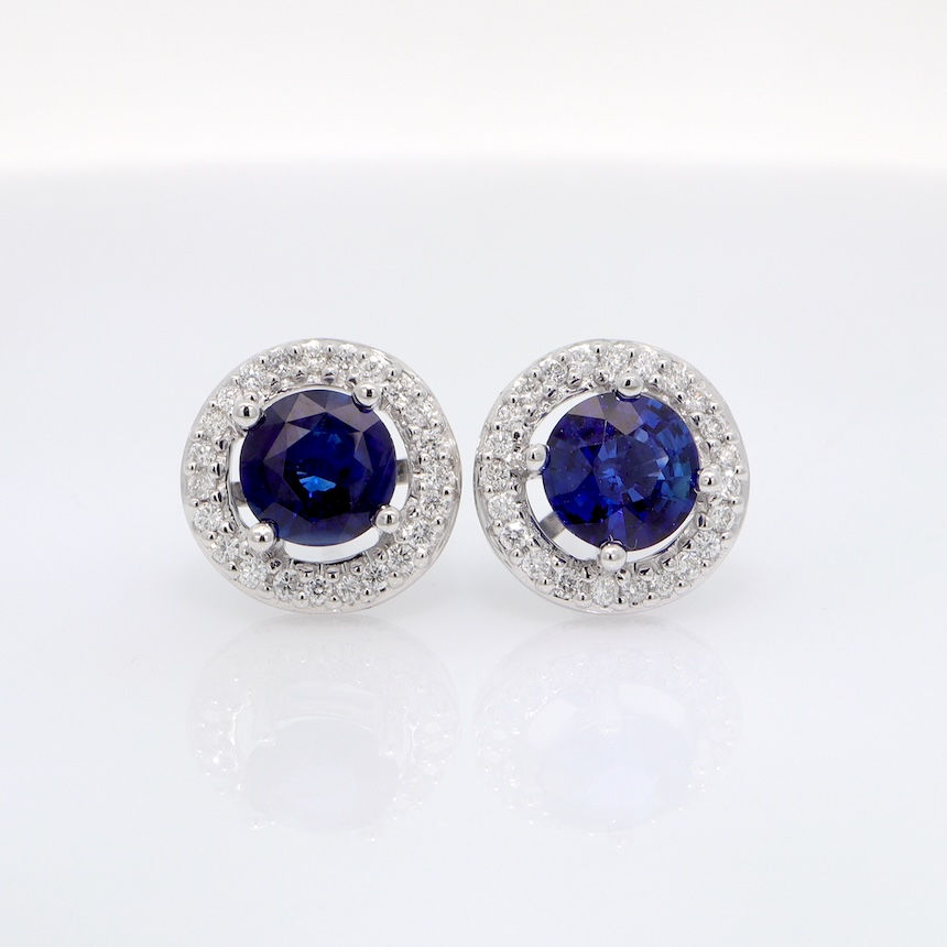 KE1501 Mismatched Halo Gemstone Diamond Earrings